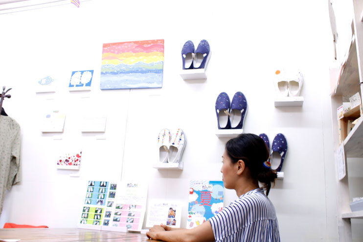 「最初子どもの上履きをやっていて、子どもの靴とか。大人の靴にも、1個、自分で買って描いてみて、ネットに子どもの靴と大人の靴出してたら、大人の靴の方が反応良くって、だんだんそっちに。」