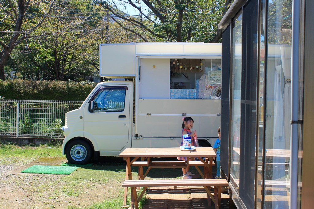 キッチンカーからはじめたクレープ屋さんは、2018年から店舗も持つようになりました。キッチンカーも置けて、ひとりで回せる広さを探していたら、住んでいる小川町から離れ、気づけば北本市まで来ていました。それが今の店舗。その目の前には小学校があることもあり、小学生がよく訪れるといいます。