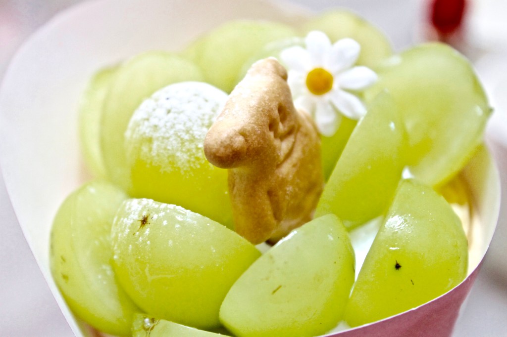 クレープが好きじゃないからこそ、そのクレープをおいしくするにはという課題が産まれる。その課題を解決するには、まったく違う視点が必要なことも多い。でもこれが好きだと知らず知らずのうちに視野を狭めてしまっていることも少なくありません。見たいものしか見なくて済むSNS時代はなおさらそうかもしれない。クレープとうどんという、一見すると遠く感じる関係性も、小麦粉という共通点を見出せば、それは新しい発見につながりました。もちろん、こだわりはこれだけではありません。ちょうど夏季休暇を終えて、再開したお店にうかがった際には、旬のシャインマスカットが贅沢に盛られていました。それはもうクレープというよりもパフェと言ったほうがいいかもしれません。そこには果物への思いもあると言います。